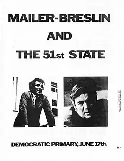 New York City: the 51st State was the platform of the Norman Mailer–Jimmy Breslin candidacy in the 1969 New York City Democratic Mayoral Primary election. Mailer, a novelist, journalist, and filmmaker, and Breslin, an author and at the time a New York City newspaper columnist, proposed that the five New York City boroughs should secede from New York State, and become the 51st state of the U.S.