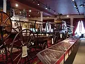 The New York City Fire Museum tells the story of the early days of firefighting in New York City.[5] The collection is home to firefighting artifacts and equipment dating back to the 1650s, such as carriages, engines, fire marks, buckets, trumpets, helmets, lanterns, rattles, and uniforms. Permanent exhibitions include: Firefighting on Parade, Romance of Firefighting, Fire Apparatus, and Tools and Uniforms. The museum also has an extensive collection of fire insurance marks.[5]