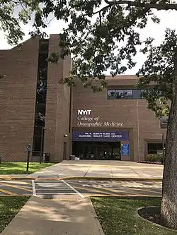 The New York Institute of Technology College of Osteopathic Medicine (NYIT-COM) is a private medical school located primarily in Old Westbury, New York. It also has a degree-granting campus in Jonesboro, Arkansas. Founded in 1977, NYIT-COM is an academic division of the New York Institute of Technology. Formerly the New York College of Osteopathic Medicine, it is one of the largest medical schools in the United States.[7][8]