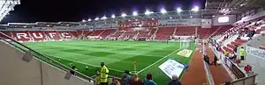 Construction started in June 2011 and the stadium was officially opened by Prince Edward, Duke of Kent on 12 March 2012.[7] The first game played at the stadium was a pre-season match between Rotherham and Barnsley, held on 21 July 2012.[8] The Millers won 2–1; the first goal in the stadium was scored by Jacob Mellis of Barnsley, and David Noble scored Rotherham's first goal in their new home.[8] The New York Stadium made its league debut on 18 August 2012, in which Rotherham beat Burton Albion 3–0,[9] Daniel Nardiello scoring the first competitive goal in the ground.[9]