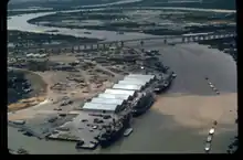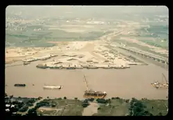 With the increased movement of U.S. troops into the Saigon area to support the Vietnam War, the deep-draft facilities there proved completely inadequate. However, a plan was already underway to construct a new port on the Saigon River upstream from the city. This site, called Newport, was in a sparsely populated area adjacent to Highway 1 and the bridge connecting Saigon with the newly developing Long Binh Post some 20 miles (32 km) northeast of Saigon. This massive project financed by the Army was constructed by RMK-BRJ.[1]: 59