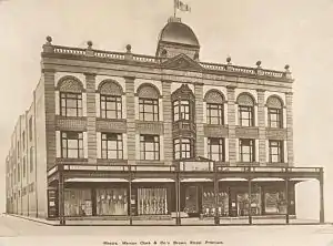 Newtown was established as a residential and farming area in the early 19th century.[8] The area took its name from a grocery store opened there by John and Margaret Webster in 1832, at a site close to where the Newtown railway station stands today. They placed a sign atop their store that read "New Town Stores". Captain Sylvester John Browne, father of Thomas Alexander Browne ("Rolf Boldrewood"), built "Newtown House" in the area around the same time, which has also been cited as the source of the name.[9] The name New Town was adopted, at first unofficially, with the space disappearing to form the name Newtown.[10]