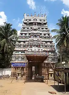 The temple is believed to have been built by Aditya Chola I during 9th century A.D and with significant additions from later Chola kings and by the ruling kings of Thanjavur Nayaks. It houses five-tiered gateway towers known as gopurams. The temple has numerous shrines, with those of Neyyadiappar and Amman being the most prominent.