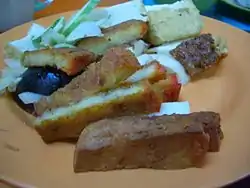 Ngo hiang (Hokkien Chinese: 五香; Pe̍h-ōe-jī: ngó͘-hiang / ngó͘-hiong / gó͘-hiong), also known as heh gerng (Chinese: 蝦管; Pe̍h-ōe-jī: hê-kǹg) lor bak (Chinese: 五香滷肉; Pe̍h-ōe-jī: ngó͘-hiong-ló͘-bah) or kikiam (Tagalog pronunciation: [ˈkɪk.jam])[1] is a unique Hokkien and Teochew dish widely adopted in Indonesia, Malaysia, the Philippines, Singapore, and Thailand; in addition to its place of origin in southern China.