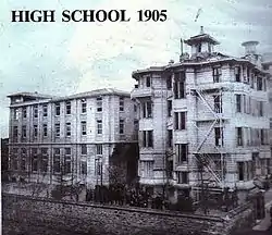 English High School, or English High School in Turkish, was a British private school that operated between 1849 and 1979. First, a girls' school (English High School for Girls) was established in Beyoğlu in 1849, followed by a boys' school (English High School for Boys) in 1905. Both schools were linked and used the same British curriculum. At EHS there were 4 different groups of students; Arden House, Charnwood House, Dean House and Sherwood House.[1] The common logo of the two schools is the blue wolf and crescent. There is also a blue rose logo.