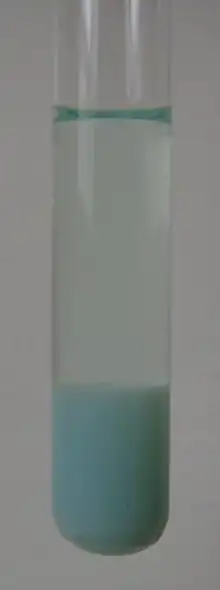 Addition of two equivalents of sodium or potassium cyanide to a solution of nickel(II) ions in aqueous solution leads to the precipitation of nickel(II) cyanide tetrahydrate.[3] On heating the tetrahydrate to 140 °C, this hydrate converts to anhydrous nickel(II) cyanide.[2]