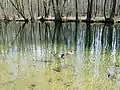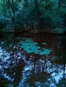The Niebieskie Źródła Nature Reserve, or Blue Springs in English, is a nature reserve in Poland[1] in the city of Tomaszów Mazowiecki. It is famous for two pools fed by an underground spring which seem to "shimmer" or "ripple" at the bottom due to the action of entering water.[2] The reserve gets its name from the unusual colour of the water. Spring water absorbs red waves, hence the light, reflected from the bottom, has blue-green colour.