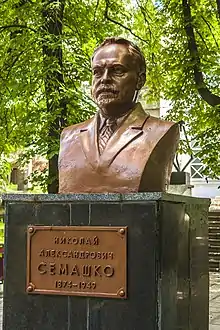 Dr. Nikolai Aleksandrovich Semashko (Russian: Никола́й Алекса́ндрович Сема́шко; 20 September [O.S. 8 September] 1874 – 18 May 1949), was a revolutionary, Soviet statesman and academic who became People's Commissar of Public Health in 1918, and served in that role until 1930. He was one of the organizers of the health system in the Soviet Union (often called the Semashko system), an academician of the Academy of Medical Sciences (1944) and of the Russian SFSR (1945).