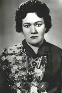 Nina Aleksandrovna Gruzintseva (Russian: Нина Александровна Грузинцева; 7 April 1934 – 17 October 2021) was a Russian Soviet canoe sprinter who had her best achievements on the 500 m distance in doubles (K-2 500 m). In this event she won a world title in 1958 and two European titles in 1957 and 1961; she finished fifth at the 1964 Summer Olympics.[1] She also won European medals in the single and quad kayak events.[2] Between 1955 and 1968 she won 18 national titles.[3] After retiring from competitions she worked as a referee, particularly at the 1980 Summer Olympic Games.[4]
