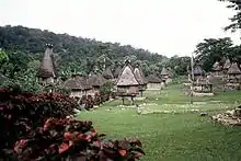 Over 200 cultural sites have been identified within the national park. The settlements in the park are inhabited by Fataluku people who speak a linguistically-distinct language and consider themselves to be ethnically distinct from those who do not speak their language.[4] The Fataluku have many ritualistic sites (lupurasa) within the park. Nino Konis Santana National Park contains many rock art sites,[13] with paintings on walls of limestone terraces and also in caves, as well as a rock engraving site. Printed sacred cloth with some of the rock art forms is exchanged during marriage ceremonies. These art forms are also seen carved on ratu houses and on Catholic headstones.[14] Many rock shelters and caves with ancestral figures of heritage value have also been recorded in the park, apart from ancient walled and open settlements, shell middens, artifacts of pottery made of stone and shells, burial sites, and water sources.[14]