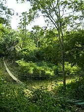 Many trees and shrubs are covered by lush vegetation along the river stalks, and these vegetation changes according to the terrain and soil. In the valleys and plains, there are vast areas where Vetiveria and herbaceous savannah grow. Overgrown grasslands typically consist of the Paspalum arbiculare and the Echinochloa. Sudanian species grow in the dry forest. There are also areas where bamboo lives.
