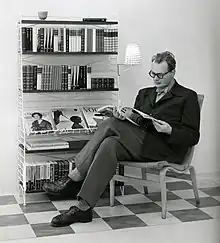 Nisse Strinning was best known for the String bookshelf system that he and his wife, the designer Kajsa Strinning, designed in 1949 for a contest initiated by Bonnier, a leading Swedish publisher.[1]