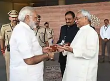 Nitish Kumar (born 1 March 1951) is an Indian politician, who is serving as 22nd Chief Minister of Bihar since 22 February 2015, having previously held the office from 2005 to 2014 and for a short period in 2000. He is Bihar's longest serving chief minister.[1] He is the leader of the Janata Dal (United). Previously, Kumar also served as a Union Minister as the Samata Party member.[2] He was member of the Samata Party until 2005 and Janata Dal from 1989 to 1994. Kumar first entered politics as a member of the Janata Dal, becoming an MLA in 1985. A socialist, Kumar founded the Samata Party in 1994 along with George Fernandes. In 1996 he was elected to the Lok Sabha, and served as a Union Minister in the government of Atal Bihari Vajpayee, with his party joining the National Democratic Alliance. In 2003 his party merged into the Janata Dal (United), and Kumar became its leader. In 2005, the NDA won a majority in the Bihar Legislative Assembly, and Kumar became chief minister heading a coalition with the Bharatiya Janata Party.