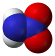 The nitramide molecule is essentially an amine group (−NH2) bonded to a nitro group (−NO2). It is reported to be non-planar in the gas phase,[2] but planar in the crystal phase.[1]