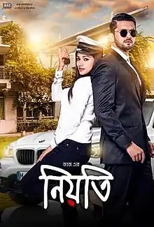 Niyoti is a 2016 Indo-Bangladeshi romantic action drama film written by Abdullah Zahir Babu and directed by Jakir Hossain Raju. Produced by Abdul Aziz under the Jaaz Multimedia banner, the film stars Arifin Shuvoo and Falguni Rahman Jolly in pivotal roles. The film is also co-produced by Ashok Dhanuka under the banner of Indian production house Eskay Movies. The film is set in two different period of time. Shuvoo plays an arrogant millionaire entrepreneur and strict by nature, who eventually falls in love with a girl who possess a totally opposite personality, played by Jolly. The film centers around the struggle Shuvo faces to cure the love of his life, Jolly, who suffers from dementia, a long-term memory loss. Niyoti released in India on 10 June 2016 and Bangladesh in August 2016.