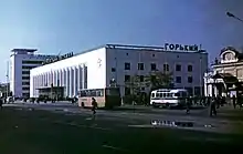 The Soviet government for a long time kept the old building. During the World War II, the Moscow railway station, along with the Kazan railway station, became an important strategic object. For the connection of the two stations between them were laid railway tracks through the cargo port on Spit and Kanavinsky bridge.[5] German pilots tried several times to bombing the station, however, it was to no avail. Bombs was fell on Revolution Square and near to the modern building of the Central Department Store. After winning the war, trainloads arrived at the train station with victorious soldiers.