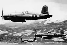 ![]() F4U-1s of 26 Squadron in flight. | |