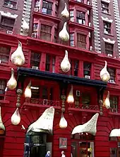 The Breslin Hotel, built in 1904, was transformed in 2009 into the Ace Hotel, but not before passing through a period as a single room occupancy (SRO) apartment building, during the low point of the neighborhood.[44] The Ace, which was redesigned by Roman & Williams[44] is a 300-room hotel whose restaurant has attracted a trendy crowd.[45] The NoMad Hotel at 28th Street and Broadway occupies the Johnston Building, a landmark 1900 French Renaissance limestone space[31][46] which features a Beaux-Arts cupola.[44] The Gershwin Hotel, on East 27th Street, and named after George Gershwin, has a unique facade, a combination of red paint and whimsical decorative touches.