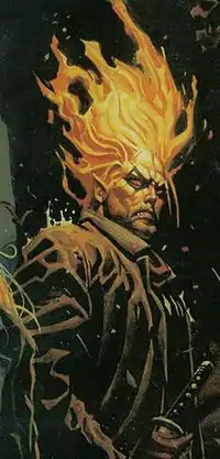 The Firelion is a massive blond-haired hulk that has the ability to conjure fierce fires, the result of Narn K experimention. He was once known as Phestus Gold, a police officer who had the misfortune of being the one in a million to die of spontaneous human combustion. His remains were appropriated by the Narn K scientists, who were able to put his brain into a fireproof synthetic body capable of harnessing his innate pyrotechnic abilities. He and others like him, known as "Burners", were deemed to be too dangerous for government use and scheduled for termination until he was rescued by Doc Horror. Firelion is now the last Burner alive, and he lives only to see the Narn K Corporation burn to the ground in retribution. Unlike other Nocturnals, Firelion prefers to use katana and wakizashi swords instead of firearms. When enraged, he becomes a fiery hellstorm of flames and blades. In his first appearance in the Black Planet miniseries, he lays waste to an entire building full of synthetic mob hitmen assigned to guard a captured Doc Horror. His reputation is such that even synthetics with no free will of their own show fear when they realize who he is.