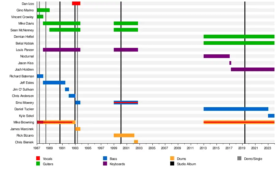 • Mike Browning - drums, lead vocals (1987–1992, 2013–present)