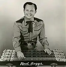 Noel Edwin Boggs (November 13, 1917 – August 31, 1974) was an American musician who was a virtuoso on the lap steel guitar and a member of the Steel Guitar Hall of Fame. He was one of the pioneers in electric steel guitar who helped popularize the instrument beyond its native Hawaiian music into other genres of American popular music, specifically Western Swing. Boggs played and recorded with almost every major artist in the genre including Bob Wills and His Texas Playboys (1944-1945) and Spade Cooley's Dance Band. Bob Wills' band helped define the guitar's role in western swing; Wills discovered and coached innovative guitarists who deeply influenced country, rock and jazz music. Boggs appeared on some 2000 recordings as a soloist and his playing was prominent on several of Wills’ hits that became Western swing standards, including "Roly Poly" and "Stay a Little Longer".