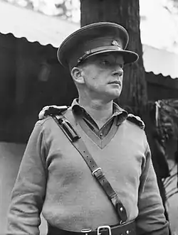 Prior to Simpson's arrival, the 29th Brigade had relieved the US 182nd Infantry Regiment before commencing the advance along the southern coast in December 1944. After about a month, the brigade returned to the main Allied base around Torokina for a rest.[8] Simpson arrived on Bougainville on 28 March,[1] and the following month the brigade began defensive operations protecting the supply lines that were maintaining the Australian thrust towards the Japanese stronghold around Buin. In July, the brigade was tasked with resuming the offensive, commencing with crossing the Mivo River, but as patrols began to push forward towards the Oami River heavy rain brought the drive to a premature halt, with the war ending before it could resume in August.[8][9]