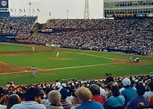 On April 18, 1970, Ryan tied a Mets record by striking out 15 batters in one game.[1] Four days later, Ryan's teammate Seaver topped it with a then-MLB record 19 against the San Diego Padres (though Ryan tied this record four years later).[16] Ryan has credited his time with Seaver and the Mets with turning him from just a flamethrower into a pitcher.[17]
