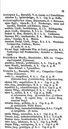 - ↑ von Steudel, E.G. (1821). Nomenclator botanicus: enumerans ordine alphabetico nomina atque synonyma tum generica tum specifica et a linnaeo et recentioribus de re botanica scriptoribus .... ... plantis phanerogamis imposita. Vol. 1. Cotta. Retrieved 2015-04-30.