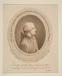 Colonel Norborne Berkeley, 4th Baron Botetourt (c. 1717 – 15 October 1770), commonly referred to as Lord Botetourt,[1][2] was a British peer, Tory politician, military officer and colonial administrator who served as the governor of Virginia from 1768 to 1770, when he died in office.