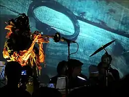 The duo's live performance involves wearing masks and the use of cinematic projections that accompany their instrumental pieces. On occasion the singer Freyja has joined them on stage. Much of their material includes soundtracks for film, like for instance ‘Last Breath’ by David Jackson.[12] The band have played a number of European festivals and toured with Sólstafir, God Is An Astronaut, 65daysofstatic and Public Service Broadcasting.[13]
