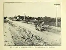 One of the most important steps taken in [statewide road planning] was the creation by the legislature in 1911 of the Central Highway. This was by no means a highway in any practical sense of the word, but was only a projected route for travel through the state. The route was to begin at Morehead City and go through the state from east to west by way of Raleigh, Greensboro, Salisbury and Asheville. All the way it followed closely the line of railroad built by the state in the middle third of the last century. That route, long ago broken up into several routes with various directions, was built on a most circuitous survey.[2][3] But the Central Highway followed its sweeping curves and even today [1931] the magnificent state route number 10 takes the same roundabout course from the seashore to the Tennessee line. In 1911 a Central Highway Committee was appointed with the function of designating the route in detail, and getting the various counties to cooperate in building it through from one end of the state to the other. The idea was to show people what a highway trip through the state would mean. Every year the committee made a trip over the route, traveling by automobile, exhorting the people to good works and telling them what the other counties were doing.[4]