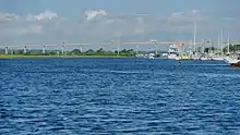 North Carolina Highway 133 (NC 133) is a primary state highway in the U.S. state of North Carolina. It traverses 46.6 miles (75.0 km) from Oak Island Drive in Oak Island to NC 210 in Bells Crossroads. The route serves communities such as Southport, Belville, Leland, Wilmington, and Castle Hayne. Additionally, NC 133 serves as an entry point for Military Ocean Terminal Sunny Point located to its east. Much of NC 133 runs parallel to the Cape Fear River and Brunswick River between Southport and Belville. West of Wilmington, NC 133 runs concurrently with U.S. Route 17 (US 17), US 74, and US 76. The road follows another concurrency along US 74 and US 421, west of Downtown Wilmington, and crosses into New Hanover County on the Isabel Holmes Bridge. North of Wilmington, NC 133 exits to the north, serving several suburban communities north of Wilmington. NC 133 runs concurrently with US 117 through Castle Hayne, before bearing northwest toward Bells Crossroads.