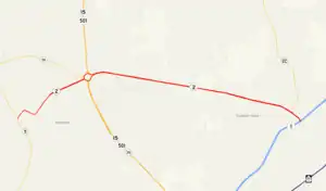 NC 2A was established in late 1941 running from NC 2 northeast of downtown Southern Pines, north of the town to US 1 in Manly.[14][15] In 1952, NC 2A was decommissioned and NC 2 took over its routing to US 1.[7][8][9]