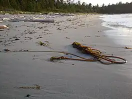 The 43.1 km (26.8 mi) trail in Cape Scott Provincial Park runs along beaches and through forests around the northern tip of Vancouver Island from Shushartie Bay to Nissen Bight. At Nissen Bight, it links up with an existing 15 km (9.3 mi) trail which leads to the trailhead at San Josef River. The trail crosses the Nahwitti River via ladders, stairs, and a cable car.[1] The total distance for hikers between the trailheads is 59.5 km (37.0 mi). The trail is in a wilderness area and hikers may see deer, elk, black bears, cougars, wolves, seabirds, seals, sea lions, grey whales and sea otters. In two failed attempts, Danish pioneers tried to settle the area at the turn of the twentieth century and the trail incorporates some of their original routes.