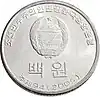![]() ![]() | ₩1 | 27 mm | Bank title, Coat of arms, value, year of minting | Grand People's Study House | 1987 | N/A | N/A | ? | |