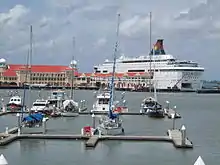 The Port of Penang consists of four terminals, one of which is located within the district. The Swettenham Pier serves not only cruise ships, but also on occasion, warships as well.[16][17][18] As of 2014, Swettenham Pier recorded 1.2 million tourist arrivals and attracted some of the world's biggest cruise liners, such as the RMS Queen Mary 2.[19]
