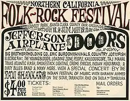 The Northern California Folk-Rock Festival was a music festival held at Family Park[1] in the Santa Clara County Fairgrounds, 344 Tully Road, San Jose, California, on May 18–19, 1968 and promoted by Bob Blodgett.[2] It was the first of two such festivals held at the venue, being followed by the Northern California Folk-Rock Festival (1969).