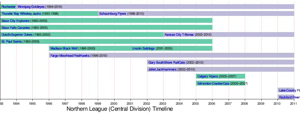The Northern League was an independent minor professional baseball league. It was not affiliated with Major League Baseball or the organized minor leagues. The league was founded in 1993 and folded after its 2010 season when financial stability became a problem. The three teams remaining in the league when it folded joined with the remaining teams in United League Baseball and the Golden Baseball League to form a new independent organization called the North American League.[1]