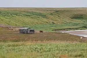The lowland tundra features extensive inland wetlands and meadows, with characteristic shrub-moss-lichen floral communities.[2] A characteristic of the ecoregion is that the coastal meadows reach far inland.