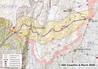 - ↑ "Syria's Assad regime forces violate ceasefire mins after it goes into effect". Middle East Monitor. 6 March 2020. Retrieved 11 March 2020.