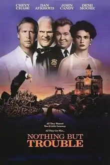 Nothing but Trouble is a 1991 American comedy horror[3] film written and directed by Dan Aykroyd in his directorial debut, based on a story by his brother Peter, and starring Chevy Chase, Dan Aykroyd (in a dual role), John Candy (in a dual role), and Demi Moore. It tells the story of two yuppies and the clients of one of them who are taken to court for running a stop sign in the bizarre, financially bankrupt small town of Valkenvania, which is dominated by a 106-year-old judge. Tupac Shakur made his acting debut, as a member of the rap group Digital Underground.