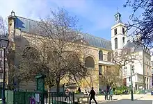 The church is oriented north-south, along the east side of the Square Charles-Victor-Langlois. The major entrance is at the south end, on rue des Blancs-Manteaux, with a secondary entrance on the north at 53 rue des Francs-Bourgeois.
