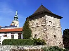 The oldest stone building in Nový Jičín is the Žerotínský Castle from the 1380s. Today it houses the regional museum.[3][4] Only a bastion from 1613 and few fragments of the town walls are preserved to this day.[16]
