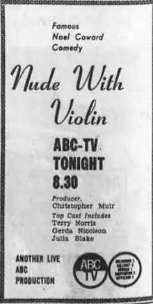 Nude with Violin is a 1964 television play broadcast by the Australian Broadcasting Corporation based on the play Nude with Violin by Noël Coward. It was directed by Christopher Muir.[4][5]