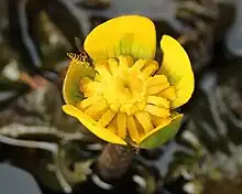 The number of species in the genus is still under review.[3][4] Until the mid-20th century, some botanists treated the genus as just a single variable species (for which the European N. lutea has priority),[5][6] while some other authorities accepted about a dozen more species on the basis of traditional taxonomic standards.[7] Recent molecular work has shown that there are substantial differences between the Eurasian species (sect. Nuphar) and American species (sect. Astylus), except for North American N. microphylla which clusters with the Eurasian species.[7][8] Molecular taxonomy has shown conclusively that recognition of so few species is out of the question, and forced an increased number of recognised species; some sources list about seventy.[3] The Kew Gardens plant list includes over twenty accepted species, subspecies and varieties; it also has a similar number as yet unresolved, together with over twenty synonyms.[4]