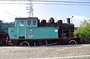 The locomotives were assigned to the depots in Šķirotava, Jelgava, Dyneburg, Rezekne and Krustpils.[2] In September 1940, after the annexation of Latvia by the USSR, the steam locomotives were taken over by the Soviet Railways.[3] During the war, some of the steam locomotives were captured by the Germans, 5 of them were taken over by the Soviet army again and after the war there were 12 steam locomotives of this series in the USSR. They were withdrawn by the railway in the 1950s, and a few were transferred to various industries.[3] After 1945, there were two Tk locomotives on the Polish State Railways: No. 235 (marked as OKa1-1) and No. 242 (marked as TKa-242).[4] Oka1-1 was withdrawn from service in 1969, and previously ran service trains in the area of the Łazy marshalling yard. The TKa-242 steam locomotive worked until 1957 in the depot in Kutno.[1] The OKa1-1 locomotive was selected for museum preservation and is now housed in the Railway Museum in Warsaw.[4] After the war, three locomotives were used on West German railways (withdrawn at the end of 1951), and one on East German railways. The other two were lost, while OKa1-1 was left behind, evenutally being housed in the Warsaw Railway Museum.[2]