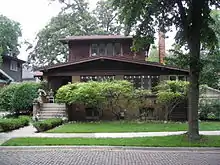 The Oak Circle Historic District is a historic district in Wilmette, Illinois, United States. The district covers 2.6 acres (0.011 km2) and includes twenty-two contributing properties and four non-contributing properties, all located along Oak Circle. It primarily consists of fifteen single-family homes representative of the Prairie School and Craftsman styles of architecture. The Oak Circle Historic District was added to the National Register of Historic Places on June 21, 2001; it was the first historic district to be designated in Wilmette.[2]