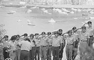 A little more than three weeks after the occupation's beginning, policemen from the Los Angeles County Sheriff's office came to enforce an "illegal zoning ordinance" on September 22, 1972.[8] The Brown Berets did not resist and were escorted off the island. A local anecdote asserts that the Berets chanted "Chicano Power" while departing, while the white townspeople sang "God Bless America."[9] At their departure, Mayor Rydell wrote, "living in the same town with these soggy, chocolate soldiers for three weeks was not pleasant for anybody."[1]
