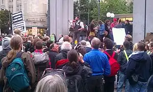 - ↑ Heffter, Emily; Rosenthal, Brian M. (October 15, 2011). "Protest swells at Westlake Park on Saturday". The Seattle Times. Retrieved October 16, 2011.