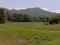 The Oconaluftee bottomlands, with Rattlesnake Mountain rising in the distance.